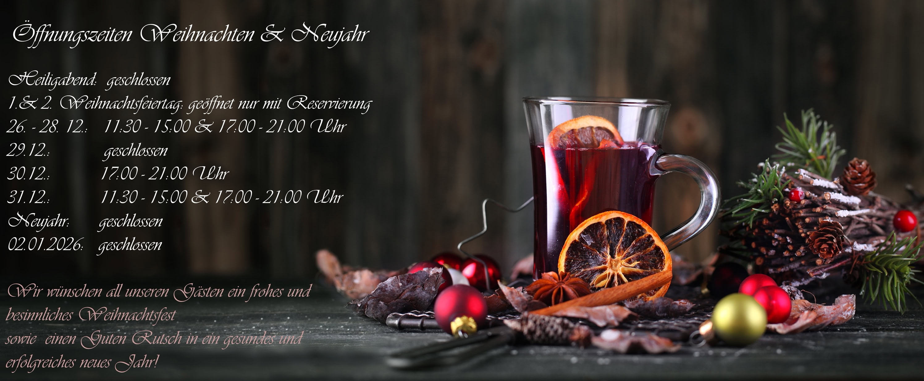 25.12.+ 26.12. -geöffnet, nur mit Reservierung
